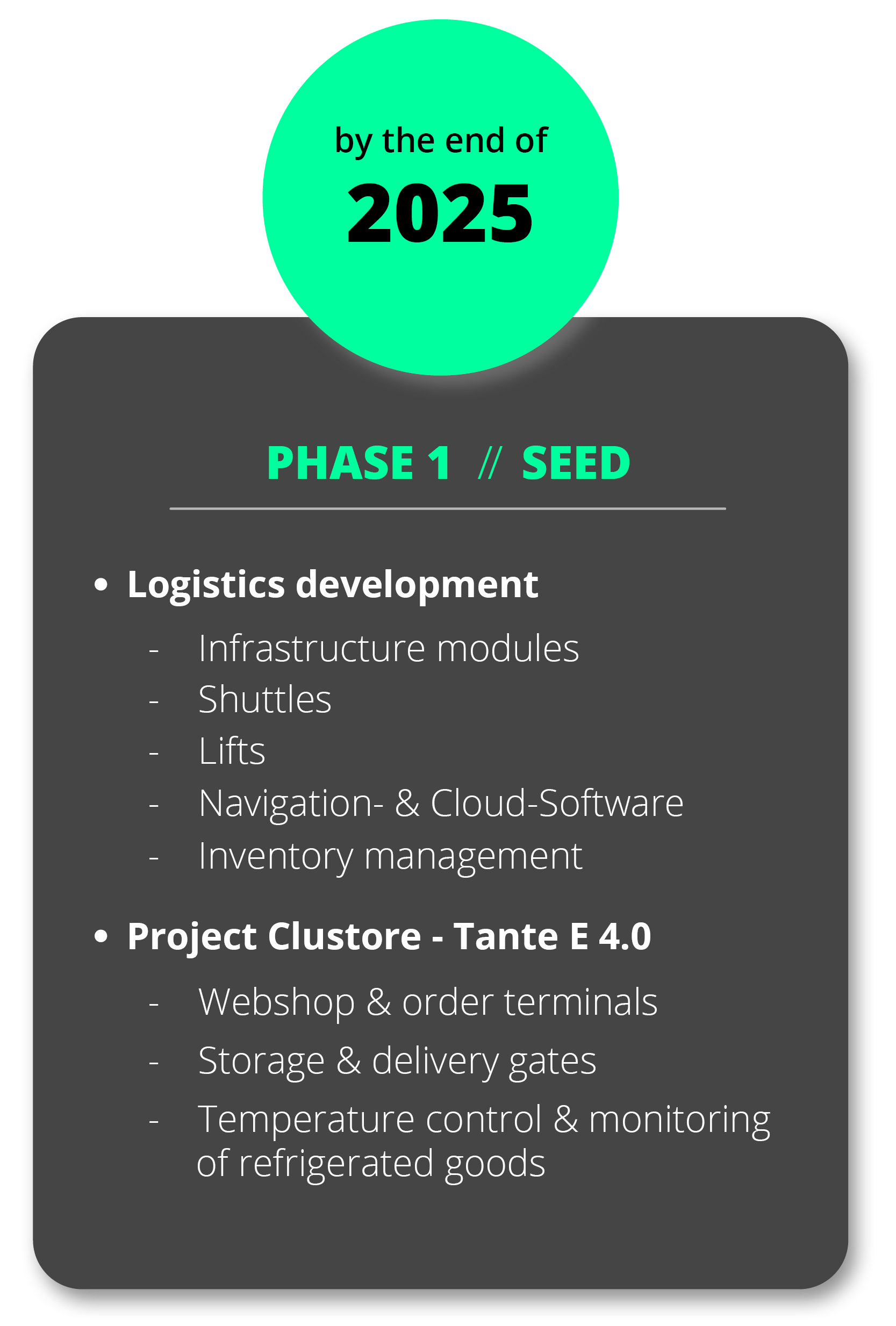 “Permanent mobility of all inventories on autonomous low-cost shuttles”