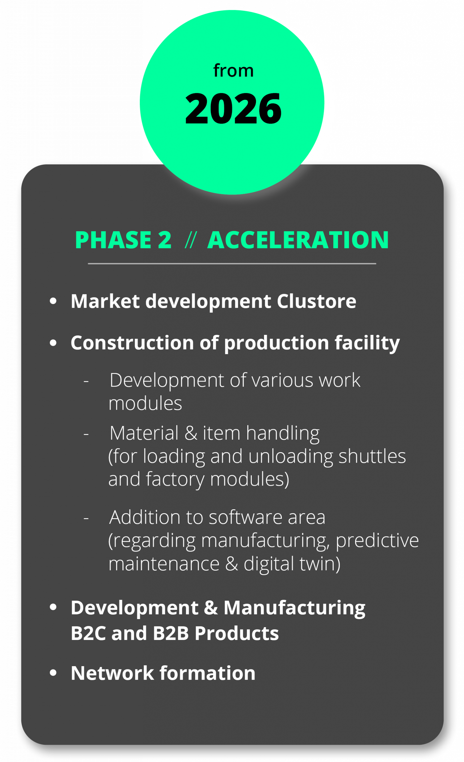 The Clustore project adds sales modules to the dynamic logistics system, including a web shop, order termhttps://morgenwerk.org/clustore/inals, and picking stations. A pilot plant will go into operation at the end of 2025.